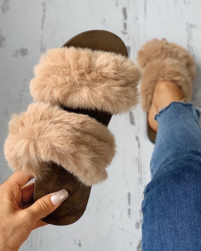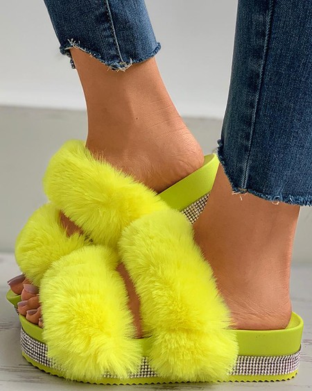Keen to embrace a chunkier style? Peep toe fluffy flat slipper. +please note that slight color difference should. Fluffy design open toe flat shoes.